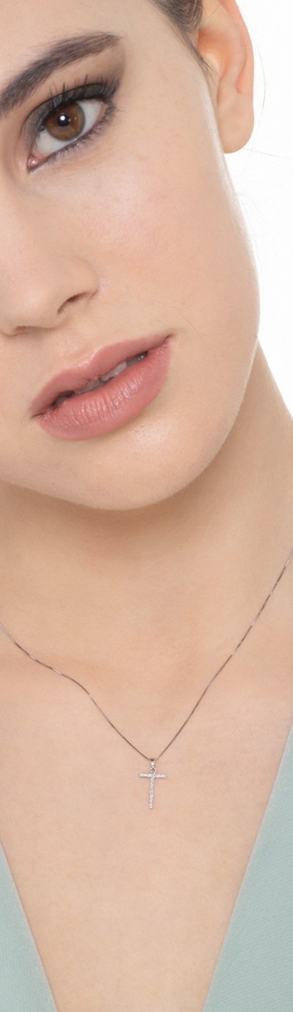 Collana lettera T in oro bianco 18k con diamanti, 1 cm