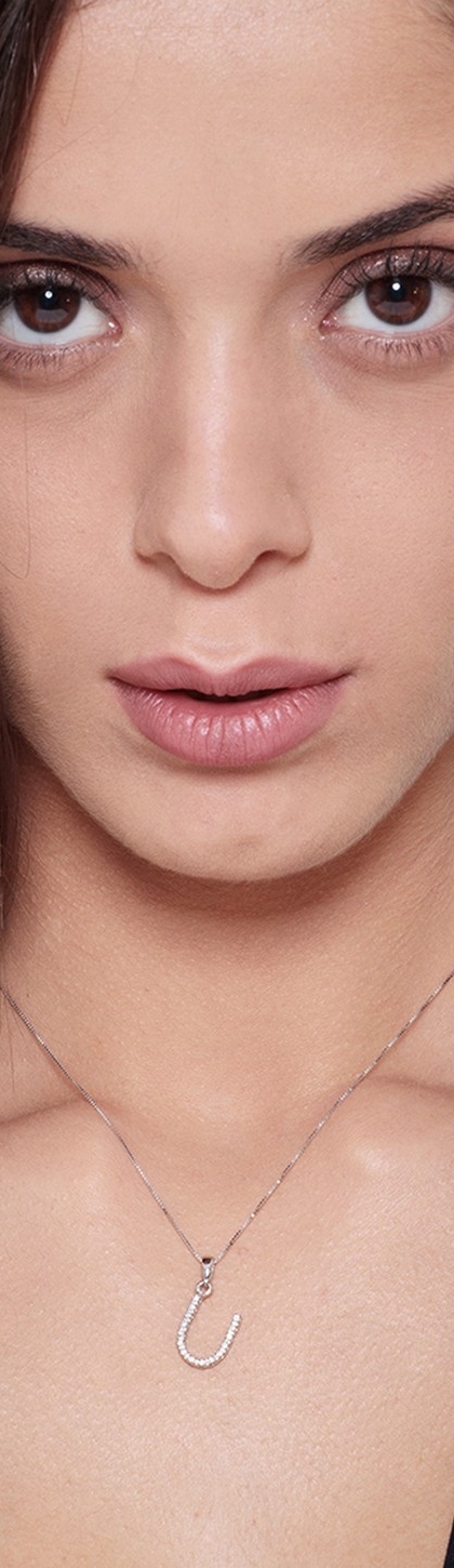 Collana in oro bianco 18k ciondolo con lettera U sgriffata con incastonati diamanti taglio brillante colore G e purezza Vs.