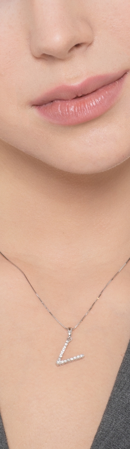 Collana lettera V in oro bianco 18k con diamanti