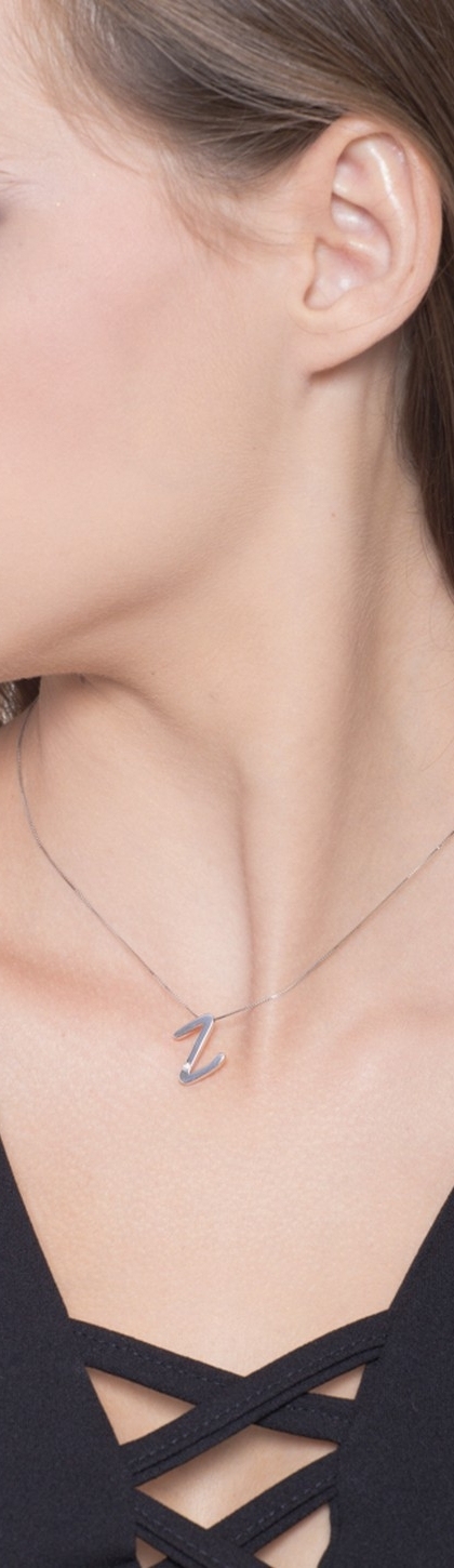 Collana lettera Z in oro bianco 18k con diamante