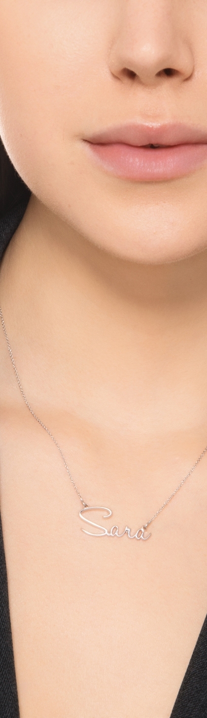 Collana personalizzabile in oro bianco 18k corsivo stilizzato, SARA