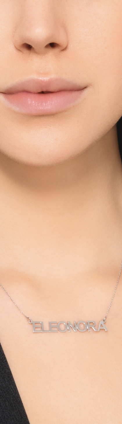 Collana personalizzabile oro bianco 18k in stampatello, ELEONORA