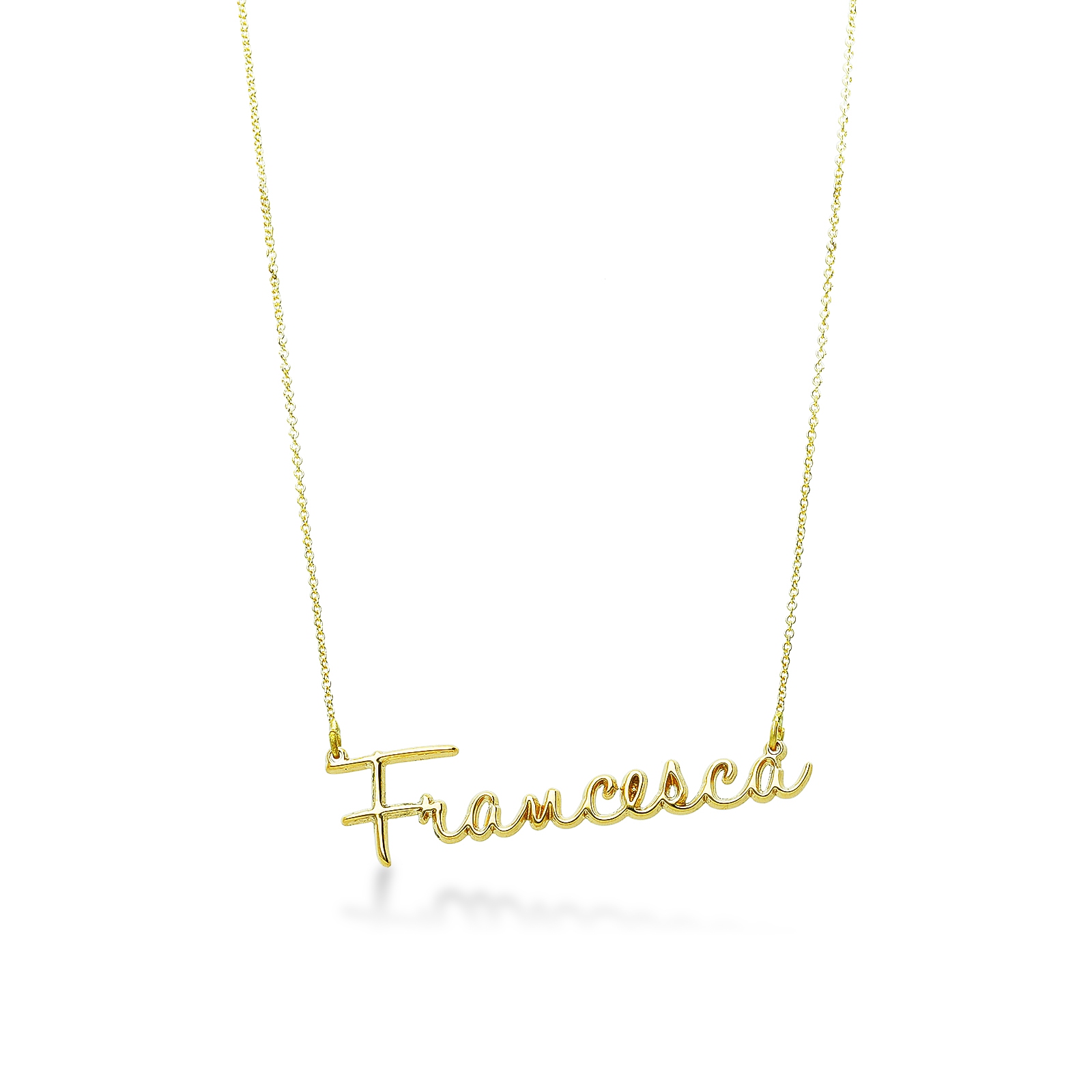 Collana personalizzabile oro giallo 18k in corsivo stilizzato, FRANCESCA