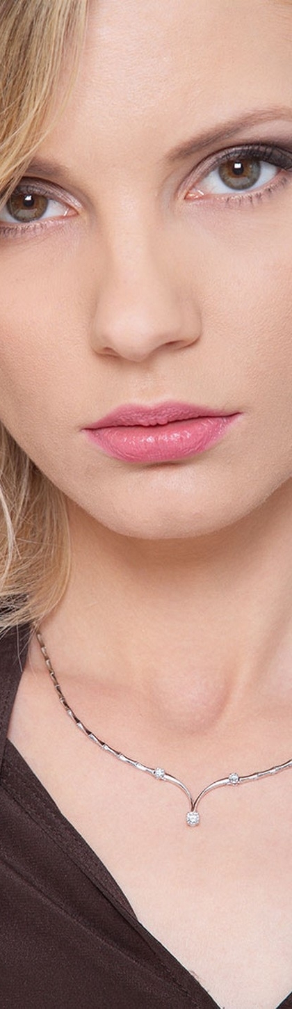 Collana semirigida a V in oro bianco 18k con diamanti.