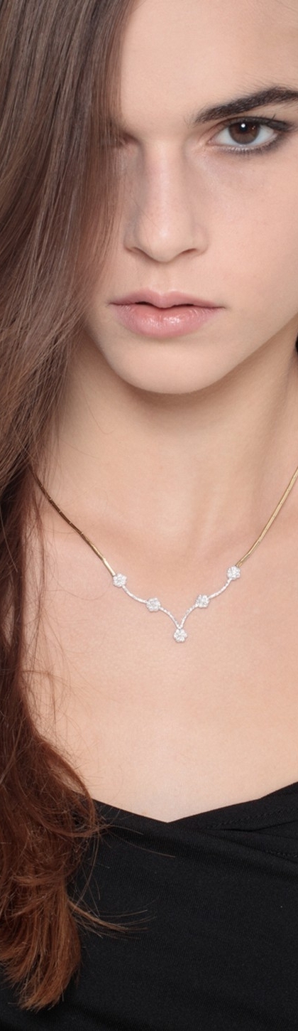 Collana semirigida in oro bianco e giallo 18k con diamanti.