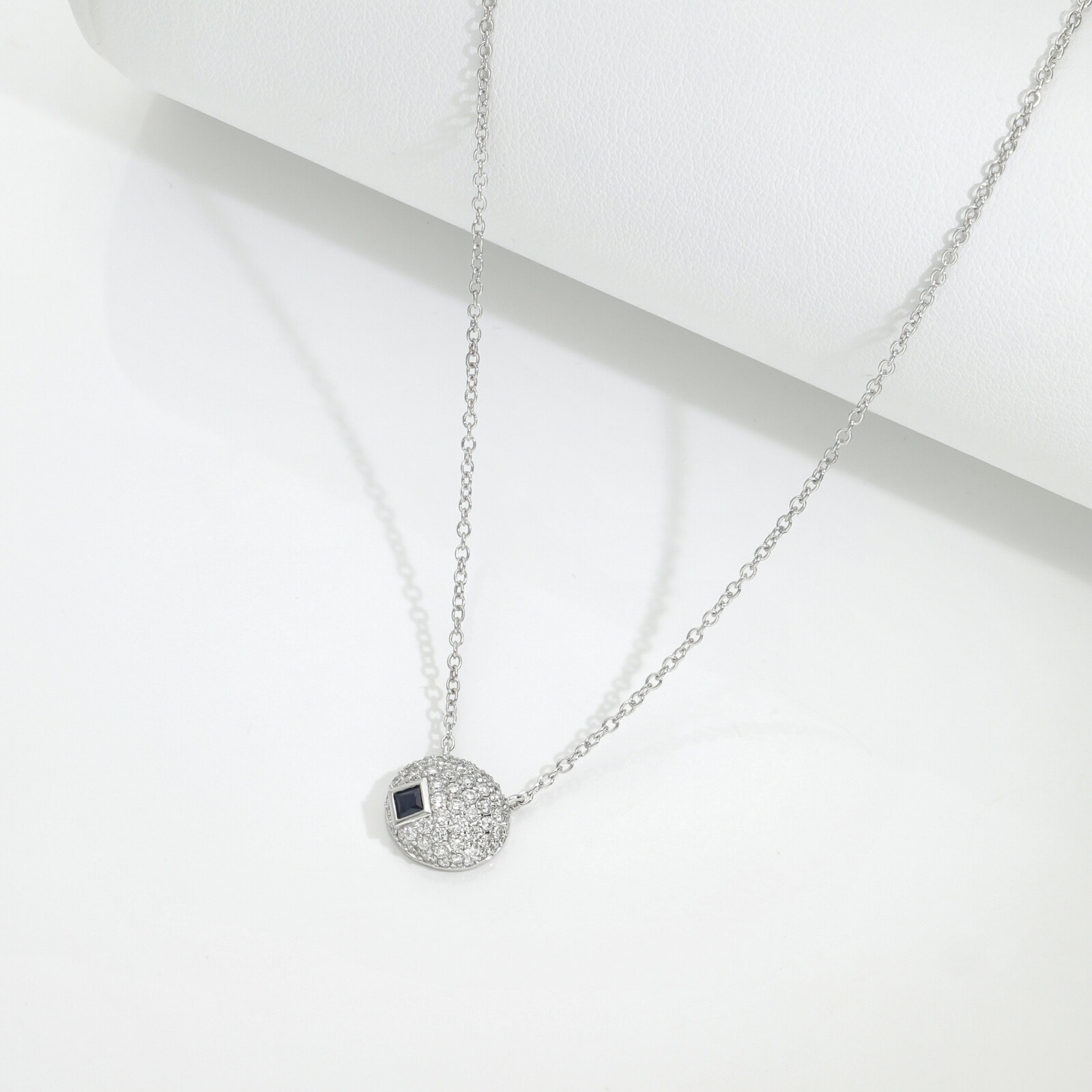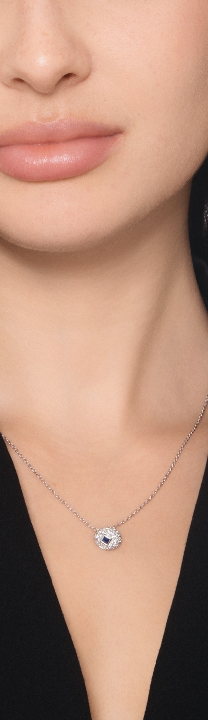 Girocollo con pavè ovale in oro bianco 18k con zaffiro blu e diamanti