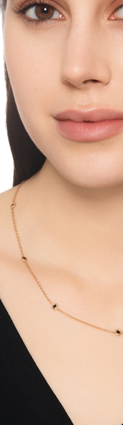 Collana in oro rosa 18k a nove castoni con diamanti neri taglio brillante.