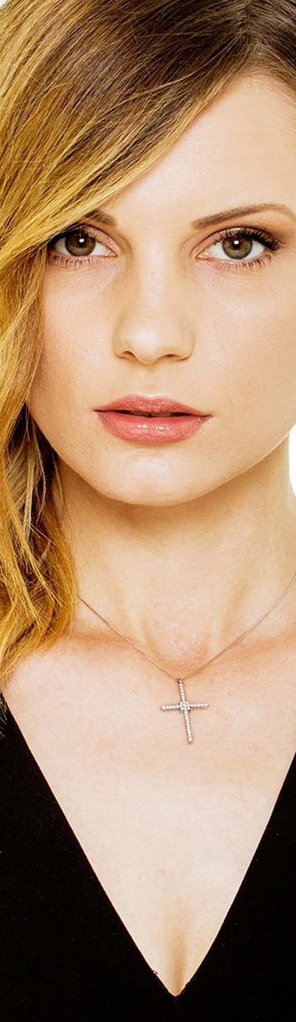 Collana con croce a griffe in oro bianco 18k e diamanti