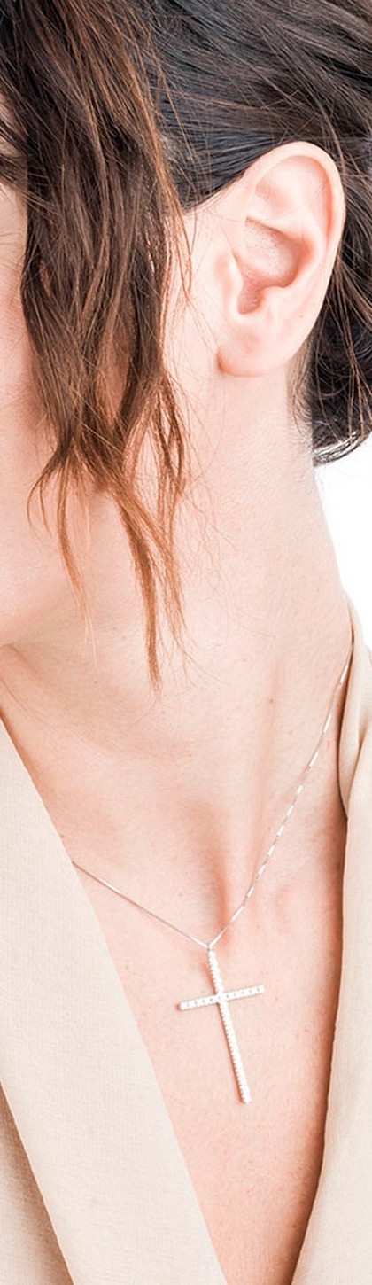 Collana con croce in oro bianco 18k con diamanti, 4,5 cm