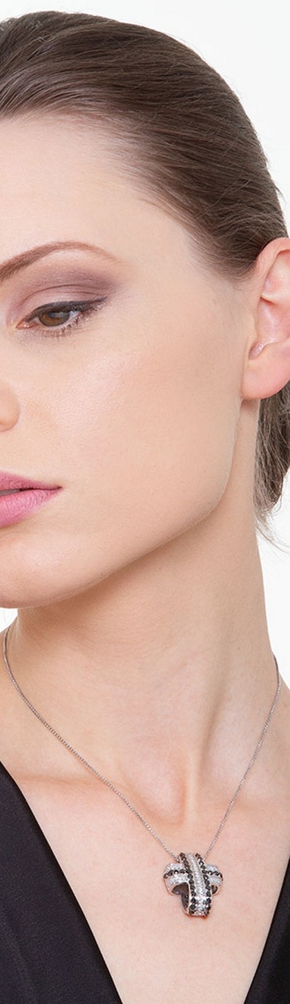 Collana con croce in oro bianco 18k con diamanti bianchi e neri