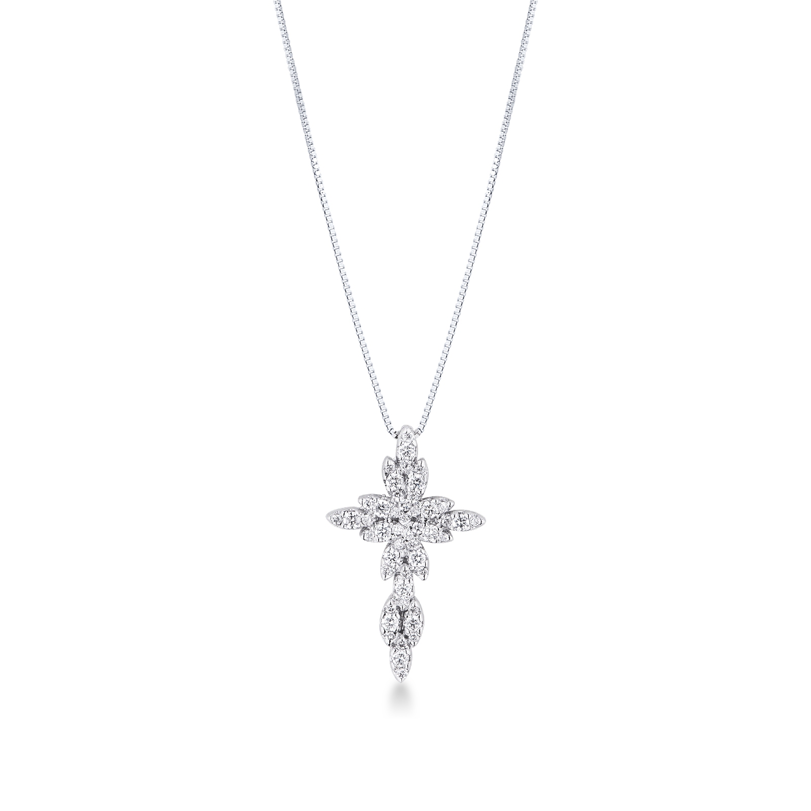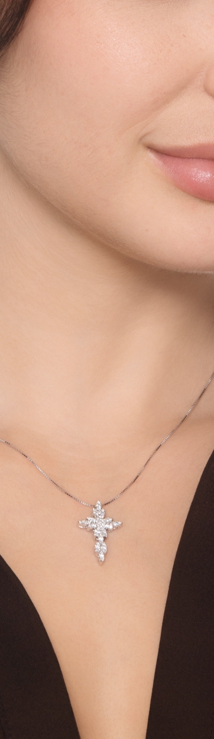 Collana croce con diamanti in oro bianco 18k