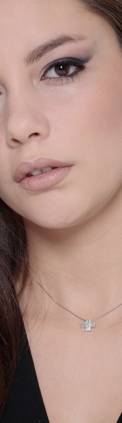 Collana in oro bianco 18k con croce in pavé di diamanti, cm 1