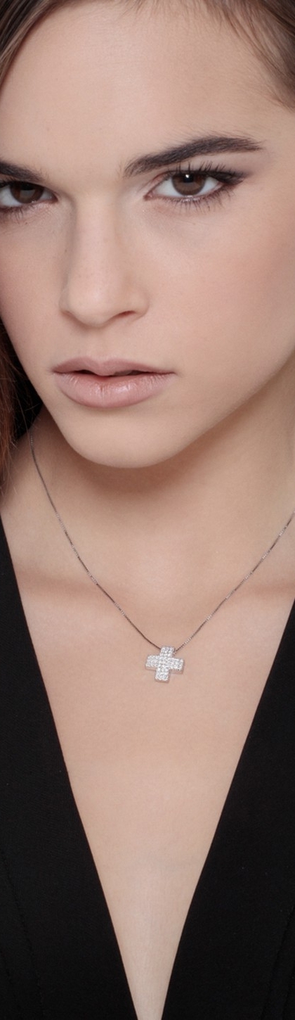 Collana in oro bianco 18k con croce in pavè di diamanti
