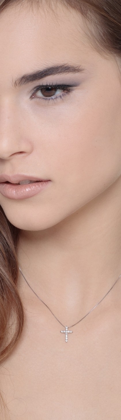 Collana in oro bianco 18k con pendente a croce e diamanti