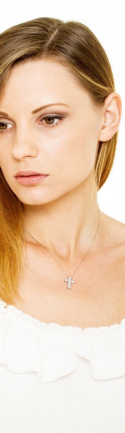 Collana in oro bianco 18k con pendente a croce in diamanti, ct. 0,20