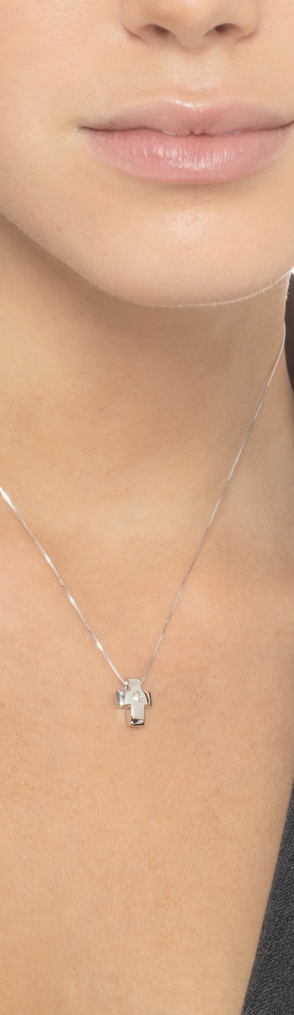 Collana in oro bianco 18k con pendente a croce in diamanti