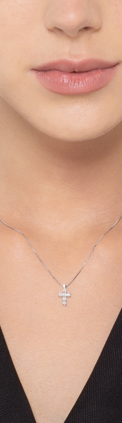 Collana in oro bianco 18k con piccola croce in diamanti