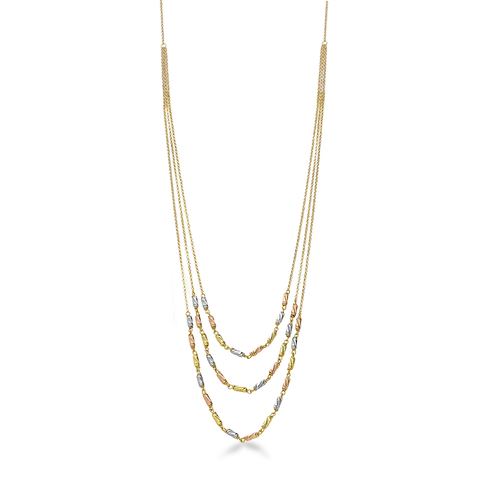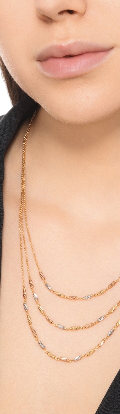 Collana a tre fili in oro bianco, giallo e rosa 18k