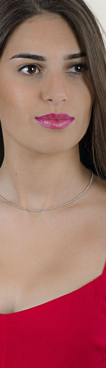 Collana con palline diamantate in oro bianco 18k di circa 2 mm di diametro, cm 40
