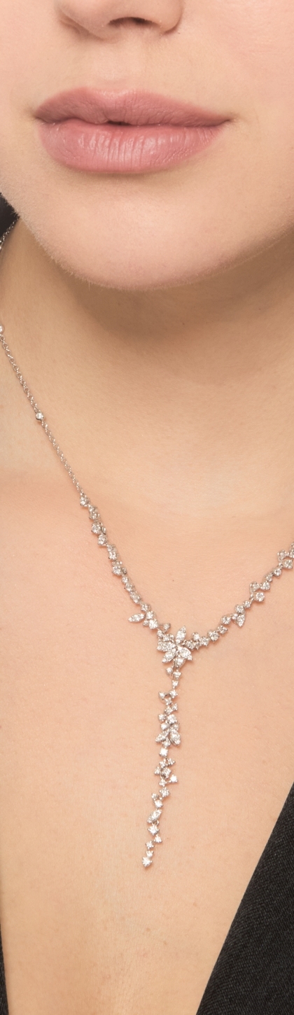 Come un fiore che sboccia sulla pelle, la collana con diamanti svela una bellezza raffinata e luminosa. ✨