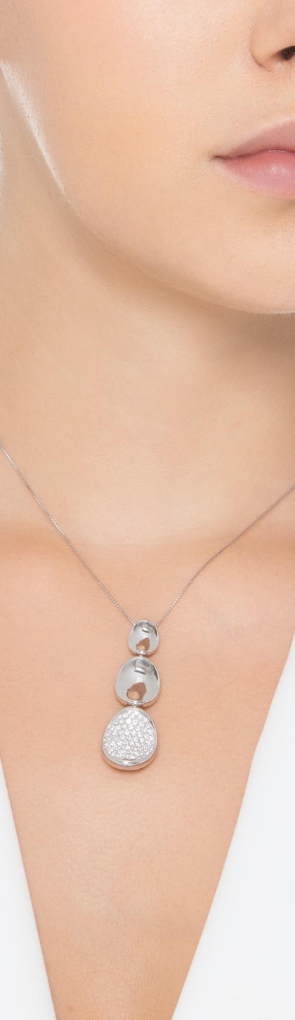 Collana in oro bianco 18k con due piastrine lucide e una in pavè di diamanti