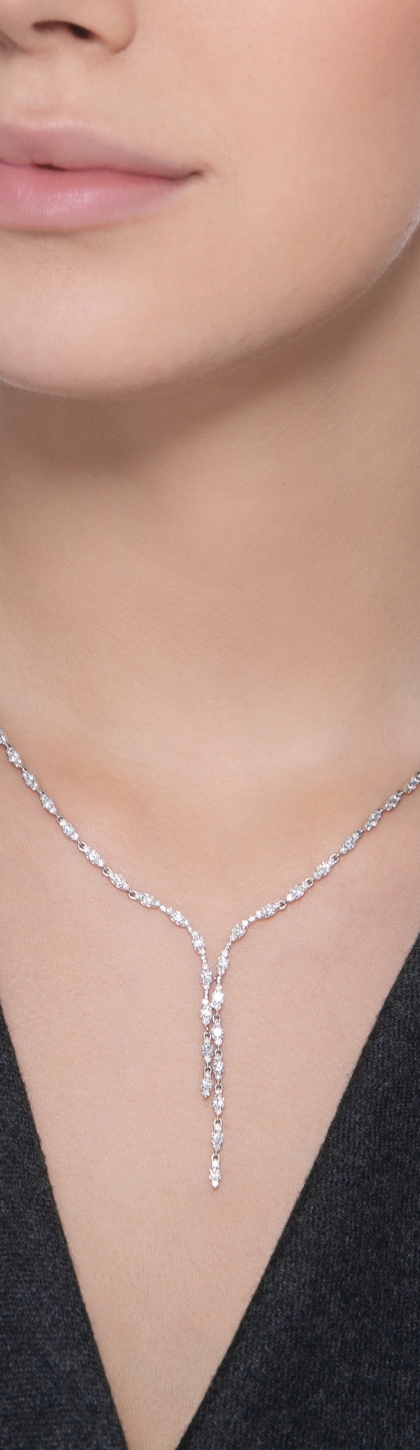 Girocollo in oro bianco 18k con navette in diamanti