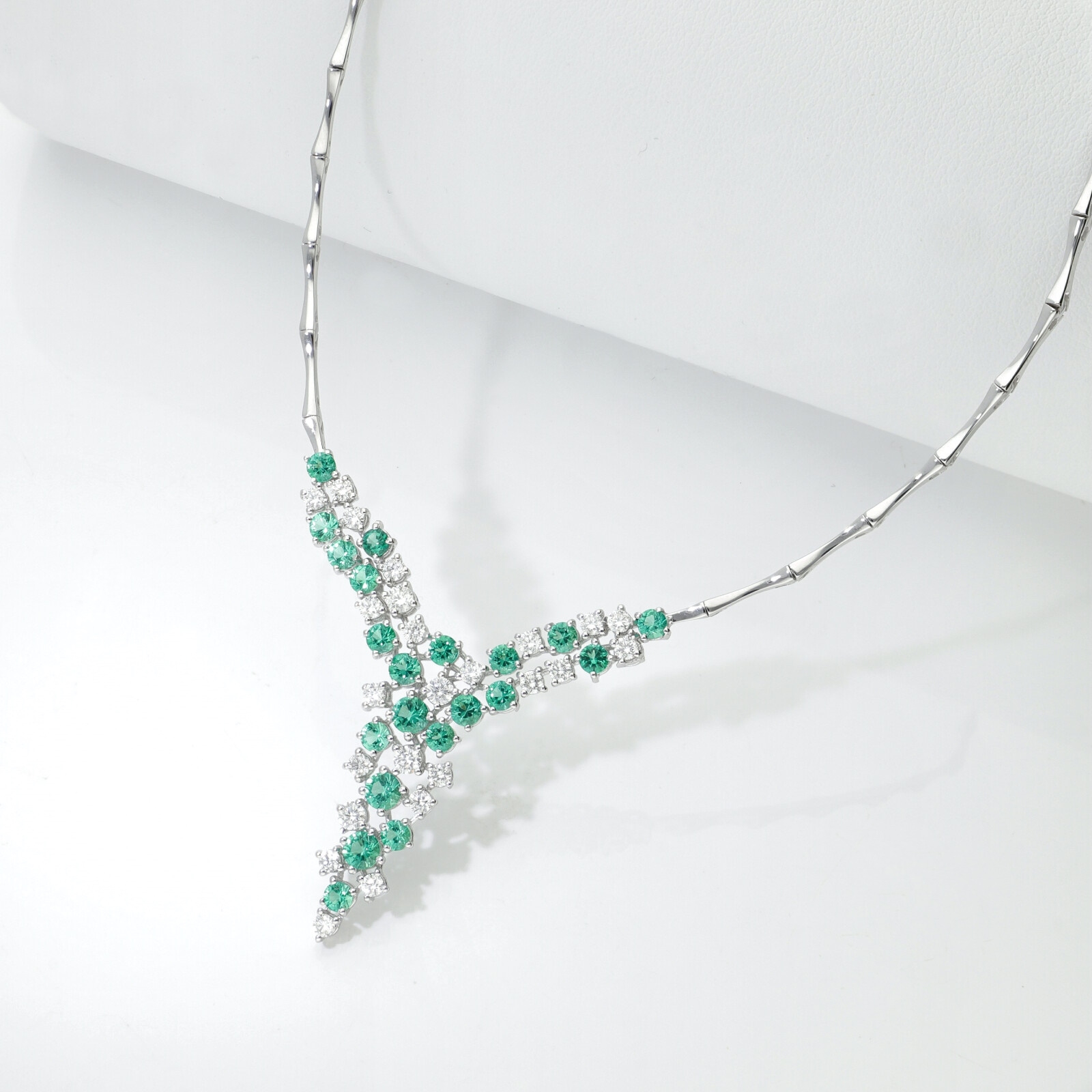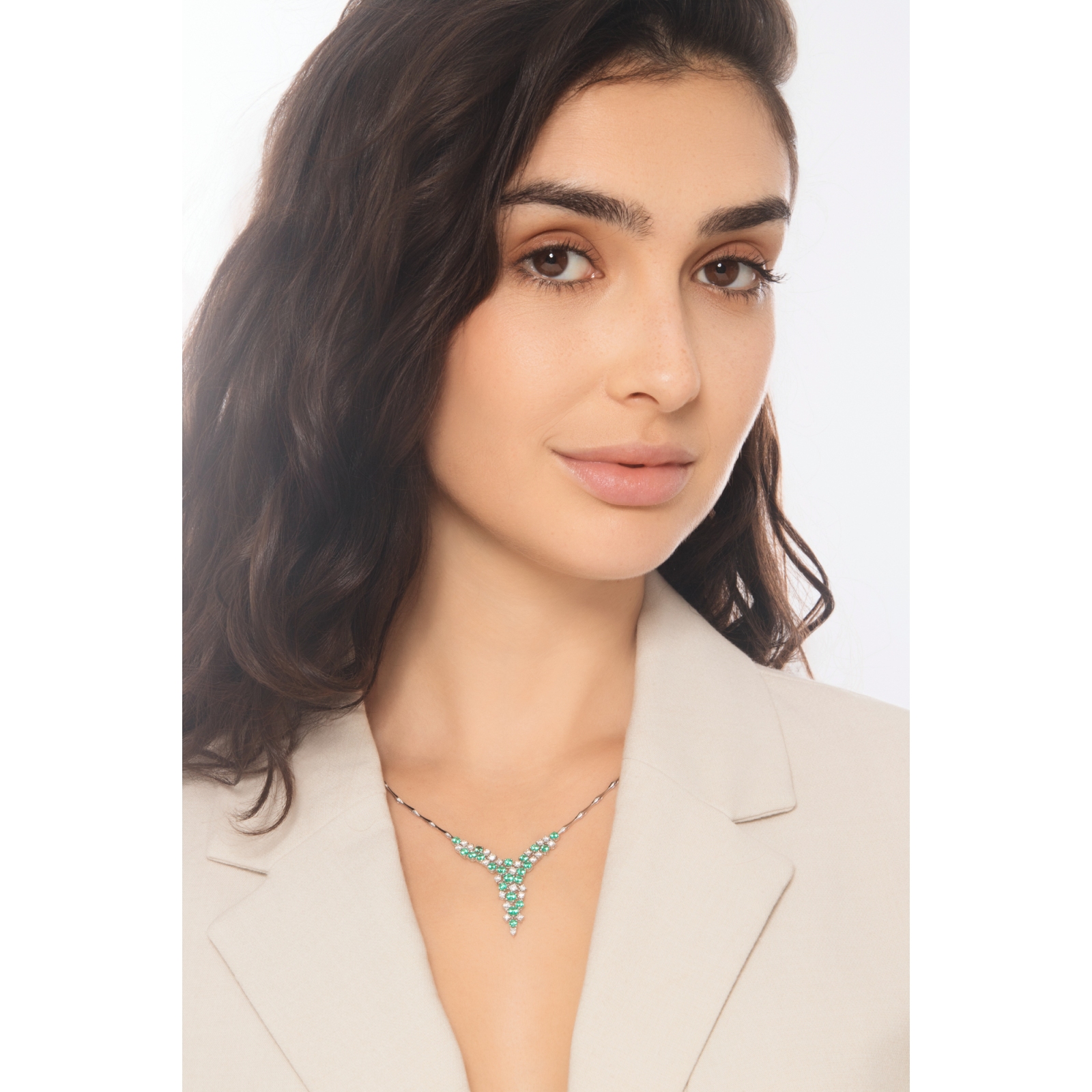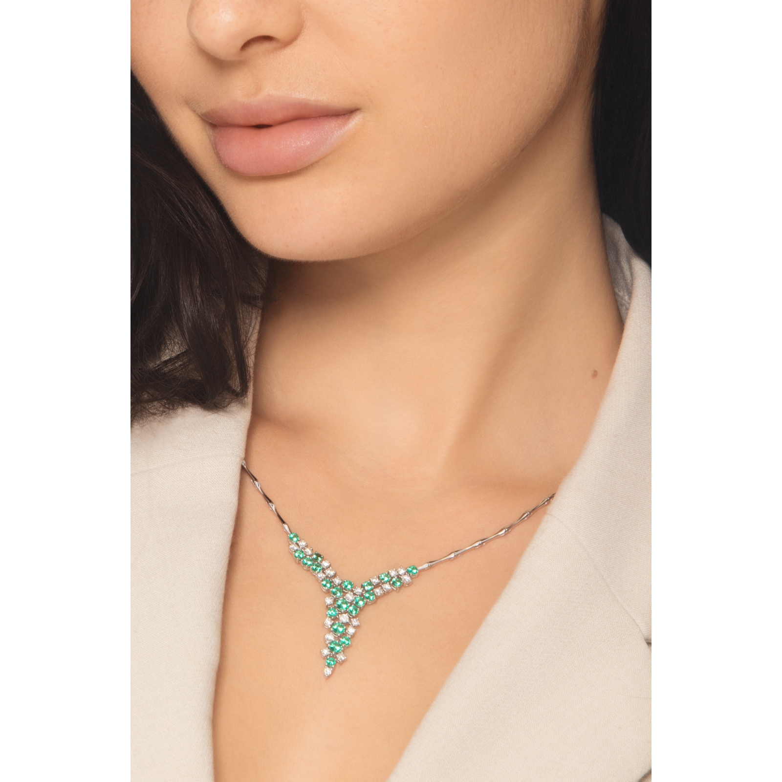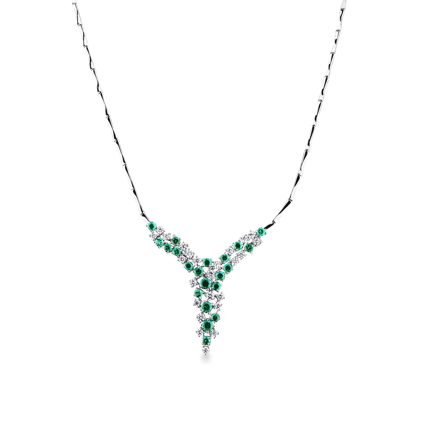 Girocollo in oro bianco 18k con smeraldi e diamanti