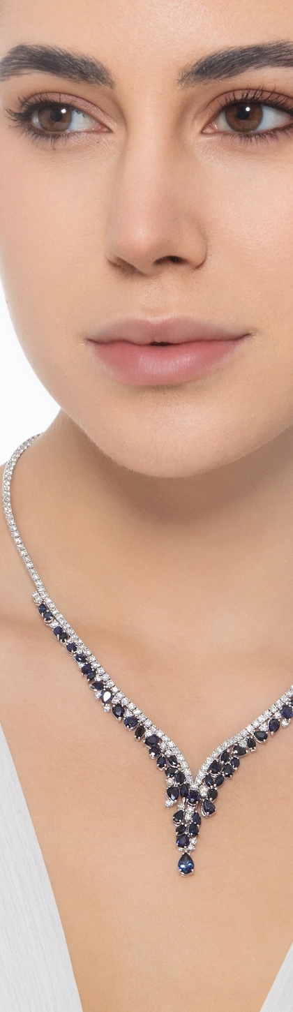 Girocollo tennis design con zaffiri blu e diamanti