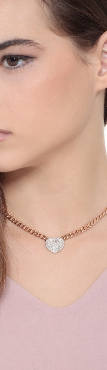 Collana groumette in oro rosa 18k con pendente a cuore in oro bianco e diamanti