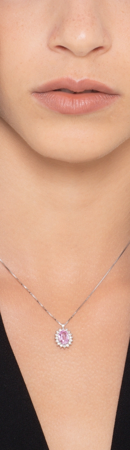 Ciondolo in oro bianco 18k con Zaffiro rosa ovale e diamanti