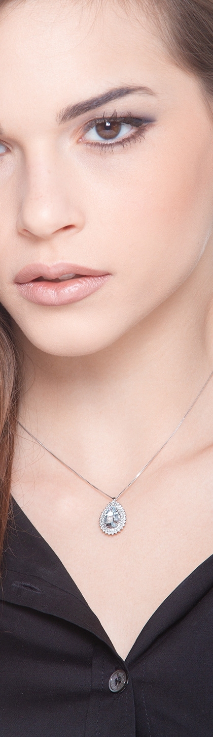 Collana con pendente in oro Bianco 18k con diamanti e Acquamarina a goccia