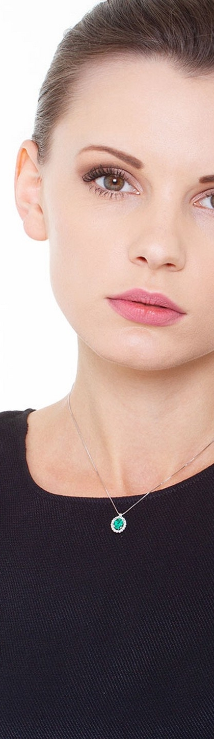 Collana con pendente in oro bianco 18k con smeraldo ovale e diamanti