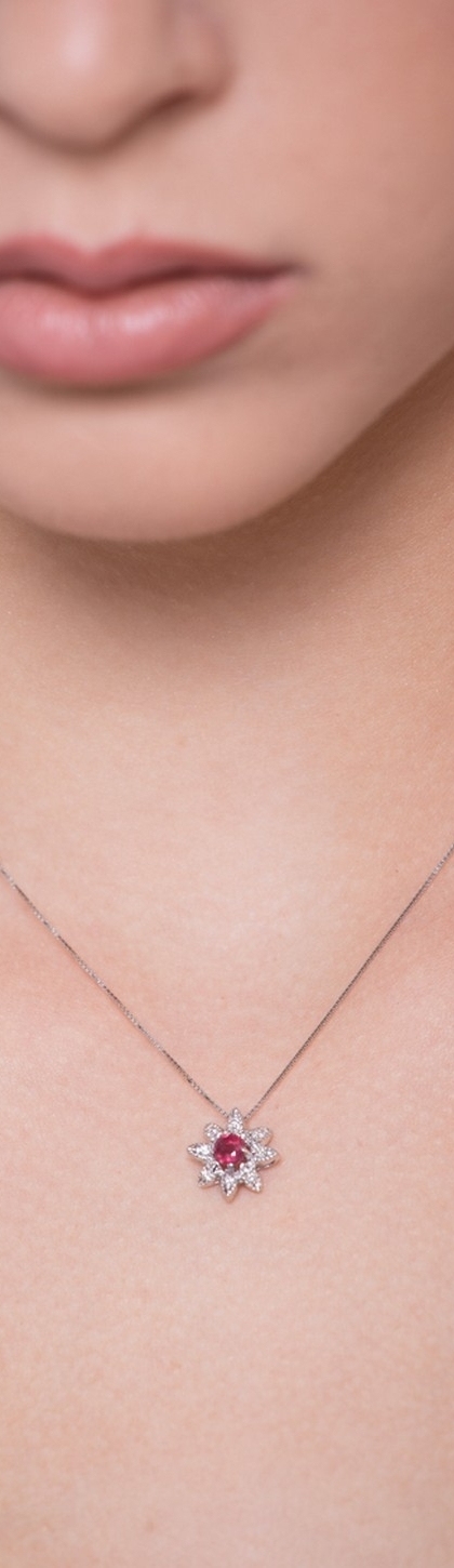 Collana in oro bianco 18k a stella in diamanti e rubino