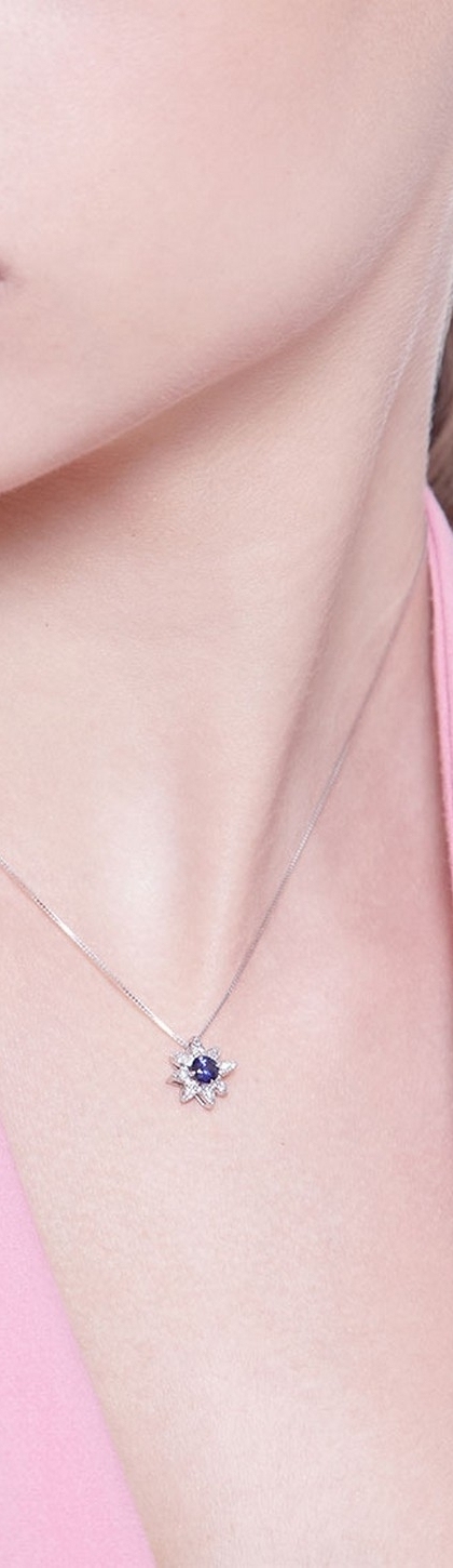 Collana in oro bianco 18k a stella in diamanti e zaffiro blu