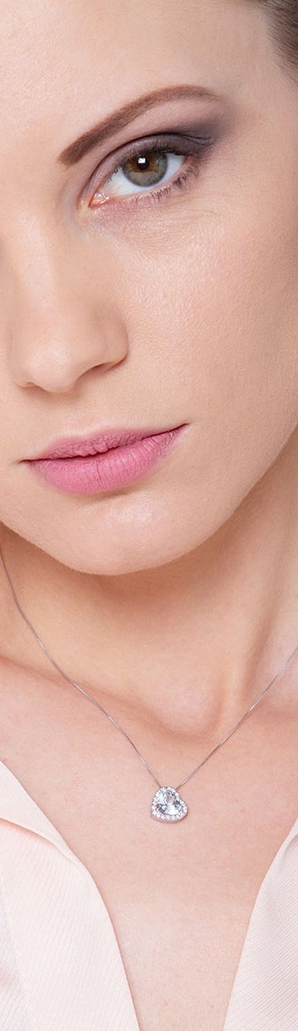 Collana in oro bianco 18k con acquamarina a cuore e diamanti