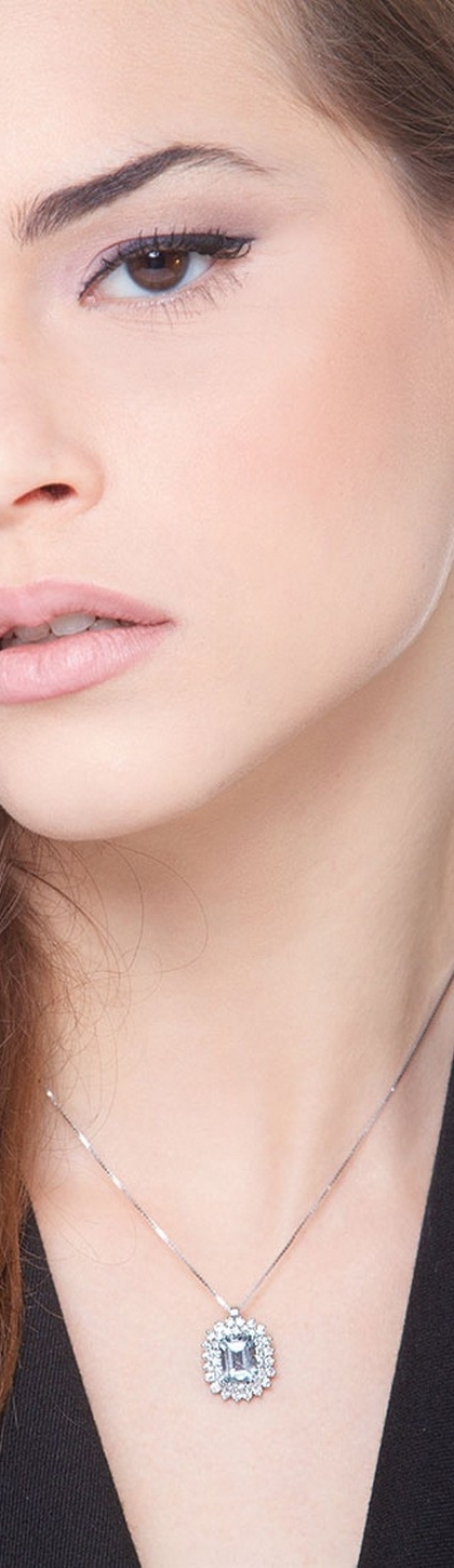 Collana in oro bianco 18k con Acquamarina e diamanti