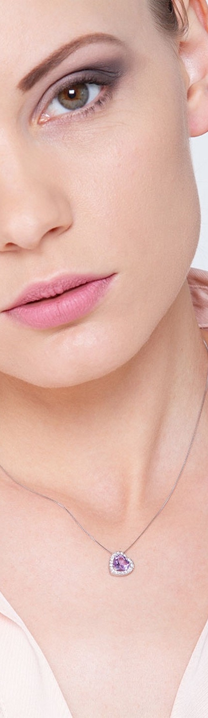 Collana in oro bianco 18k con ametista a cuore e diamanti