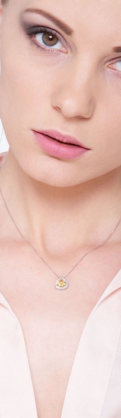 Collana in oro bianco 18k con citrino a cuore e diamanti
