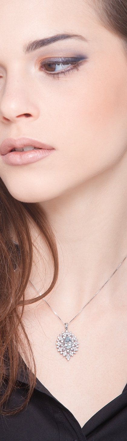 Collana in oro bianco 18k con diamanti e acquamarina a goccia
