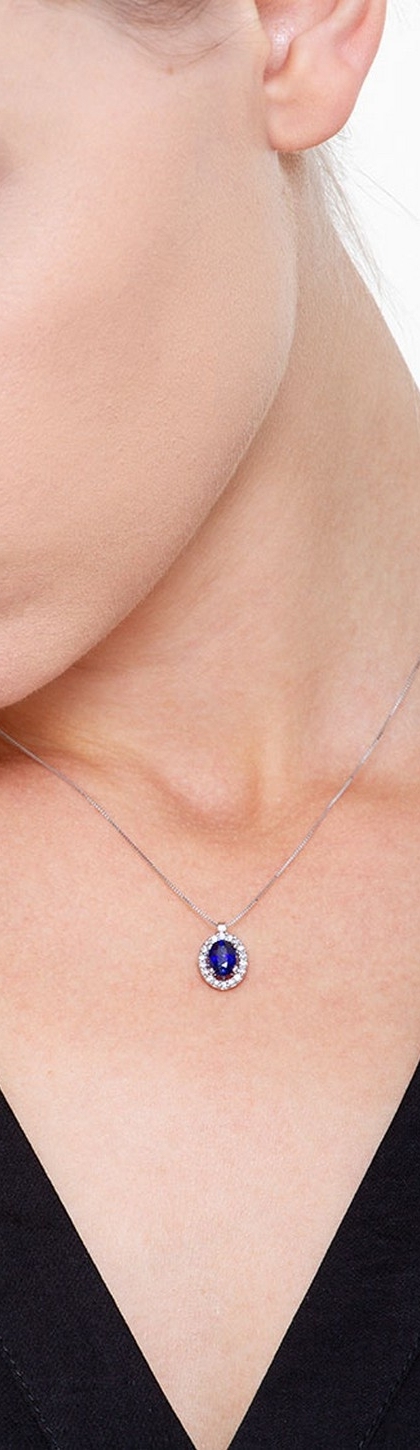 Collana in oro bianco 18k con diamanti e zaffiro blu al centro