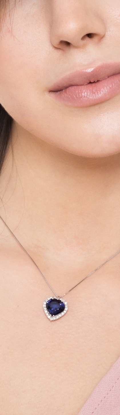 Collana in oro bianco 18k con pendente a cuore in diamanti e zaffiro blu