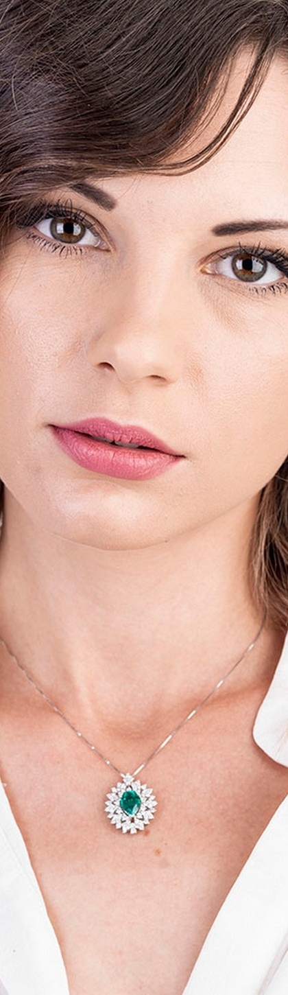 Collana in oro bianco 18k con Smeraldo a goccia e diamanti