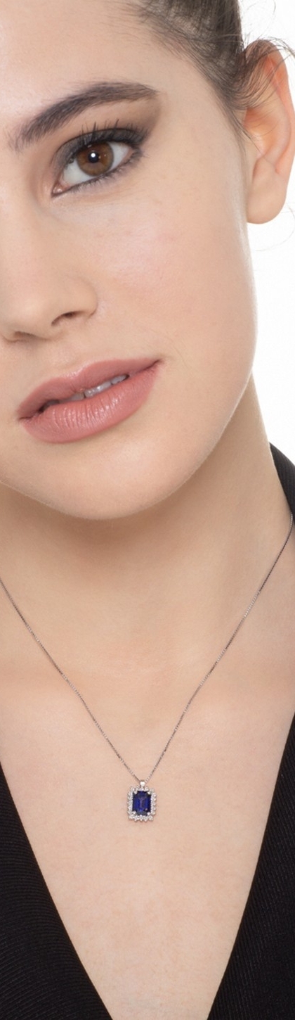 Collana in oro Bianco 18k con Zaffiro blu rettangolare e diamanti