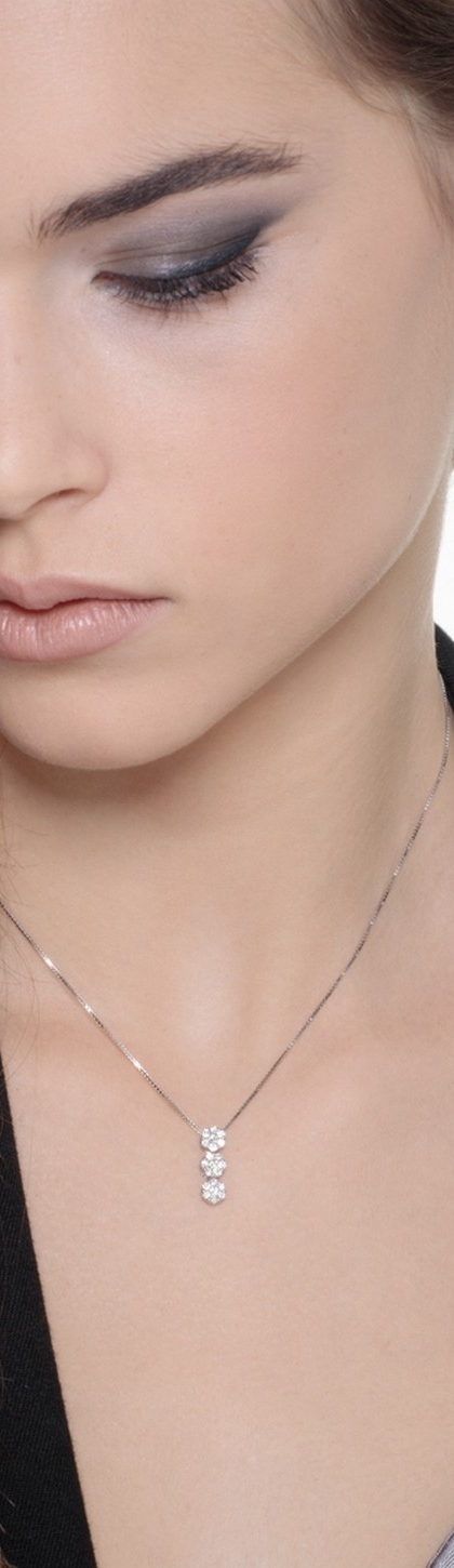 Collana in oro bianco 18k con 3 pendenti allineati in diamanti