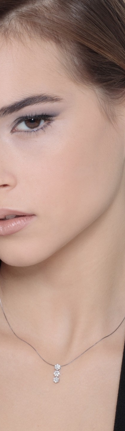 Collana in oro bianco 18k con 3 pendenti in diamanti