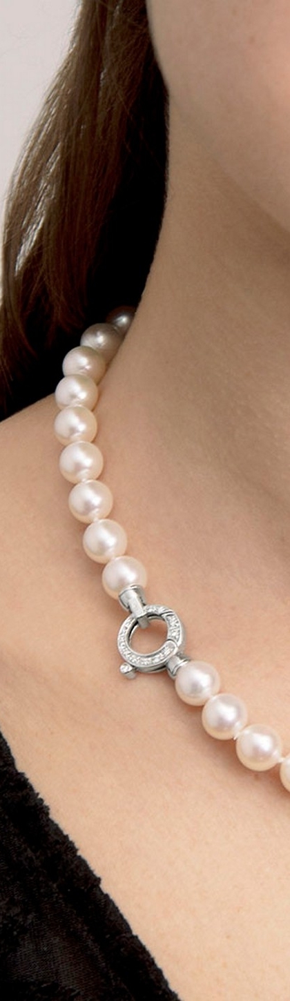 Chiusura circolare per fili perle in oro bianco 18k con diamanti, cm 2x1 circa