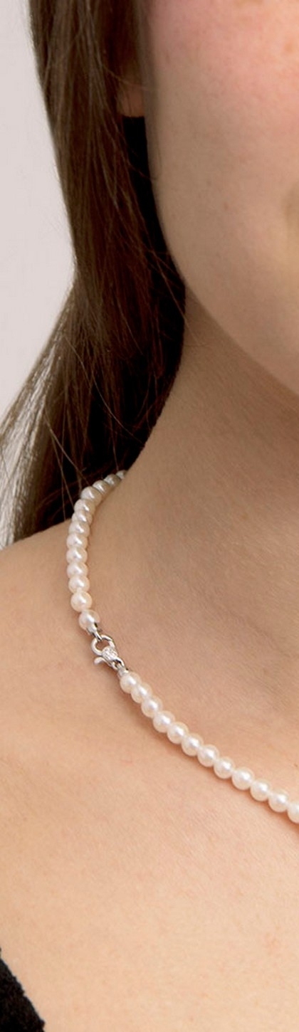 Chiusura ovale per fili perle in oro bianco 18k con diamanti, cm 1x0.5 circa