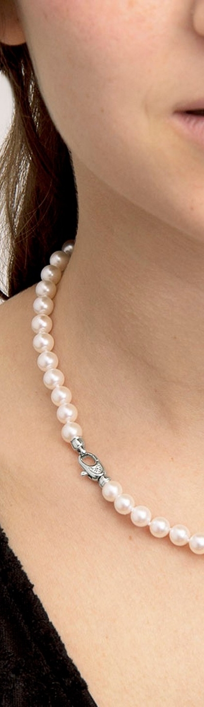 Chiusura per fili perle a moschettone ovale in oro bianco 18k con diamanti, cm 1.5x0.5 circa