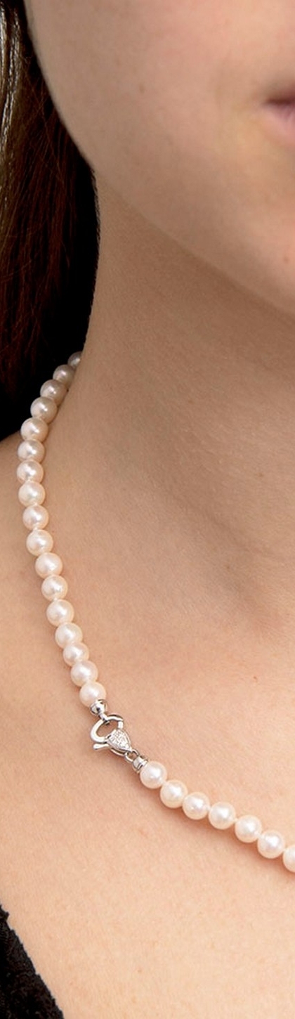 Chiusura per fili perle in oro bianco 18k con piccolo pavè di diamanti, cm 1x1 circa