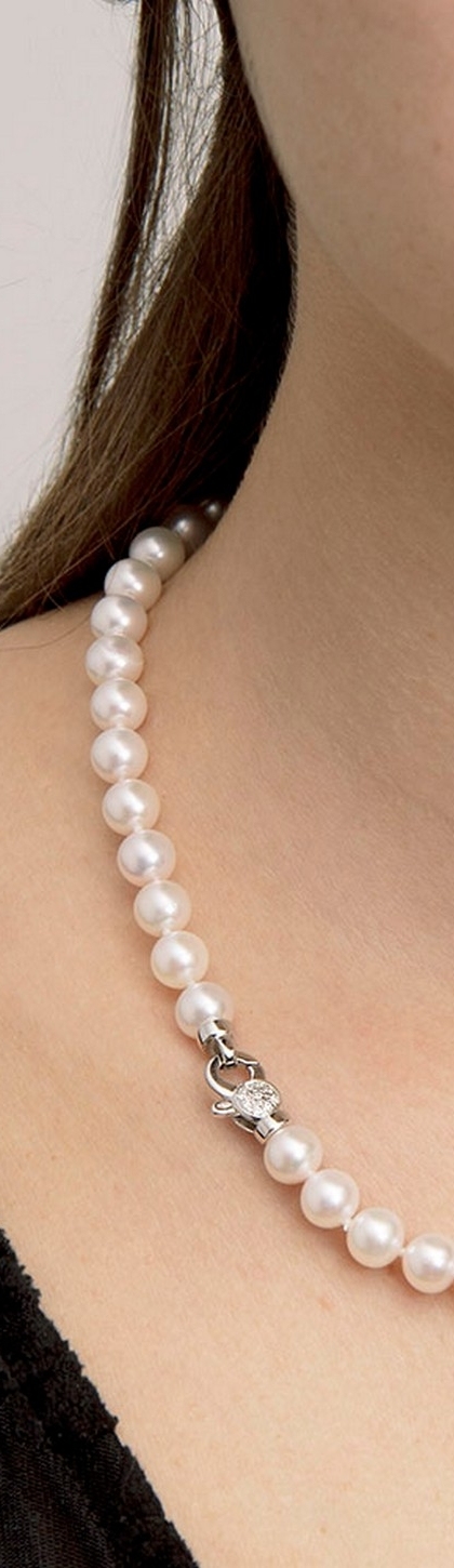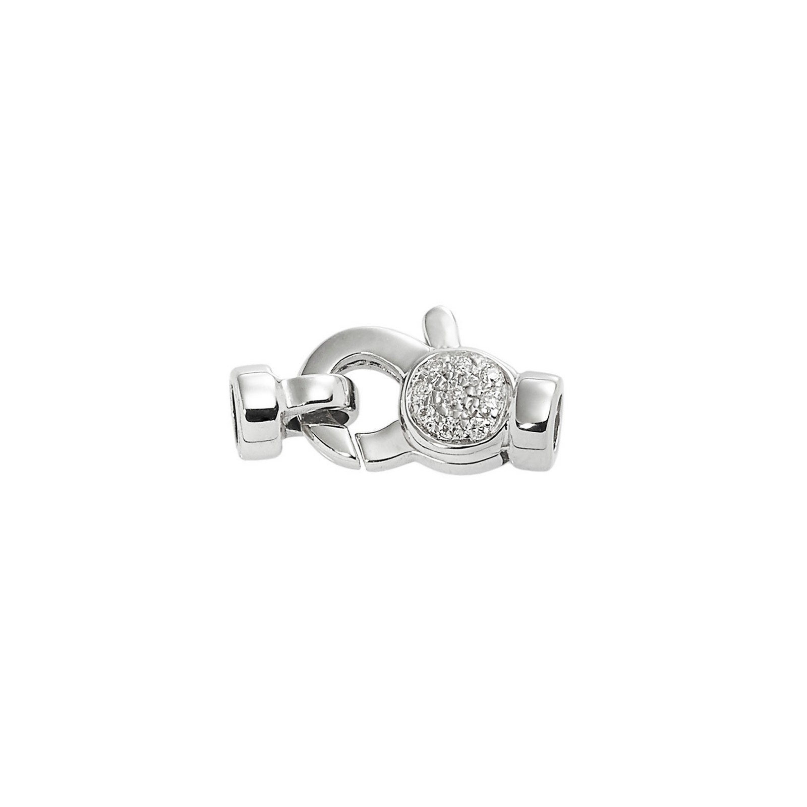 Chiusura per fili perle modello tondo in oro bianco 18k con diamanti